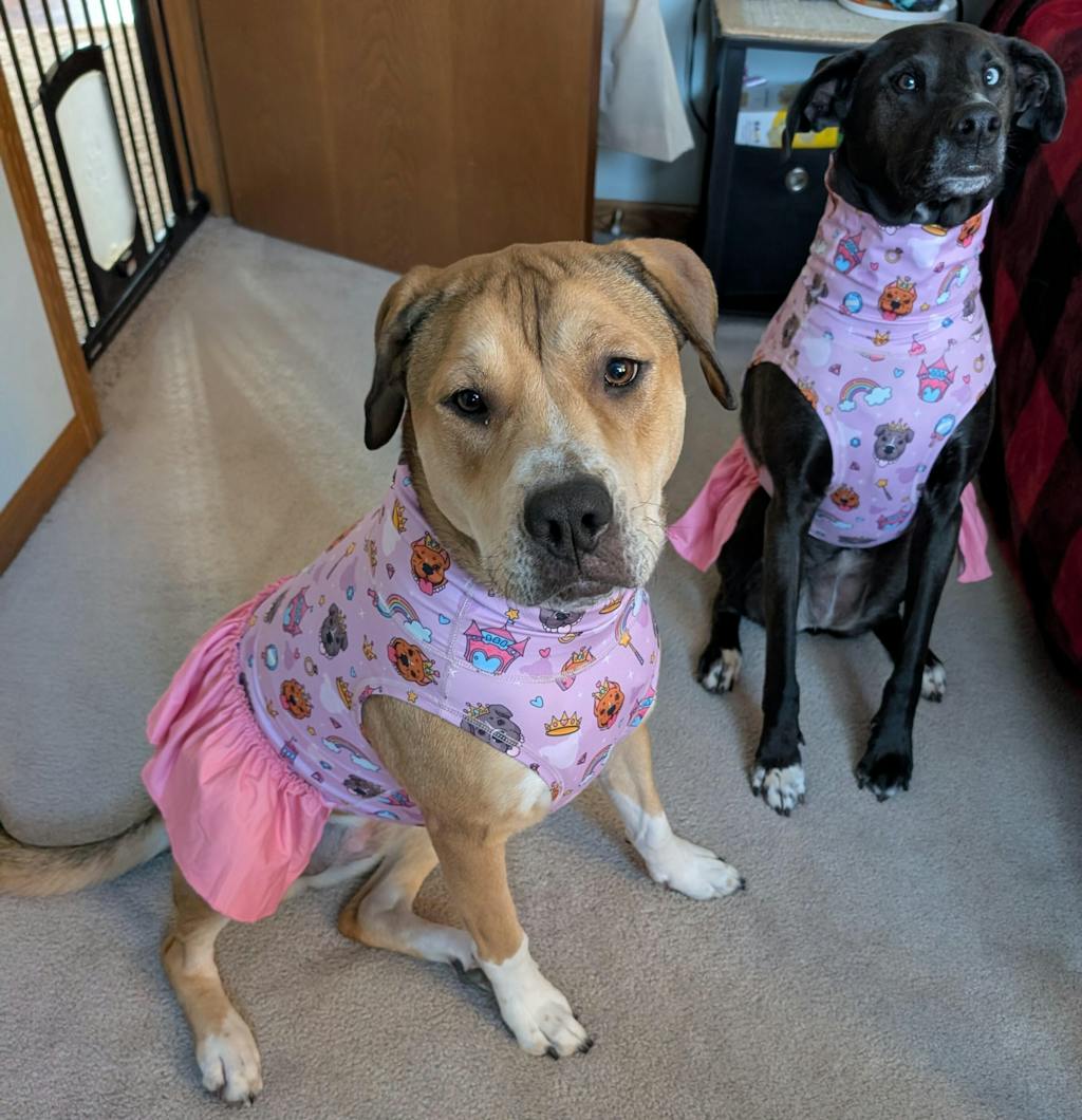 I have two pittie mixes and I can never find cute outfits that fit their bodies. These fit great and they don't slide down or restrict movement. Plus they're absolutely adorable!
