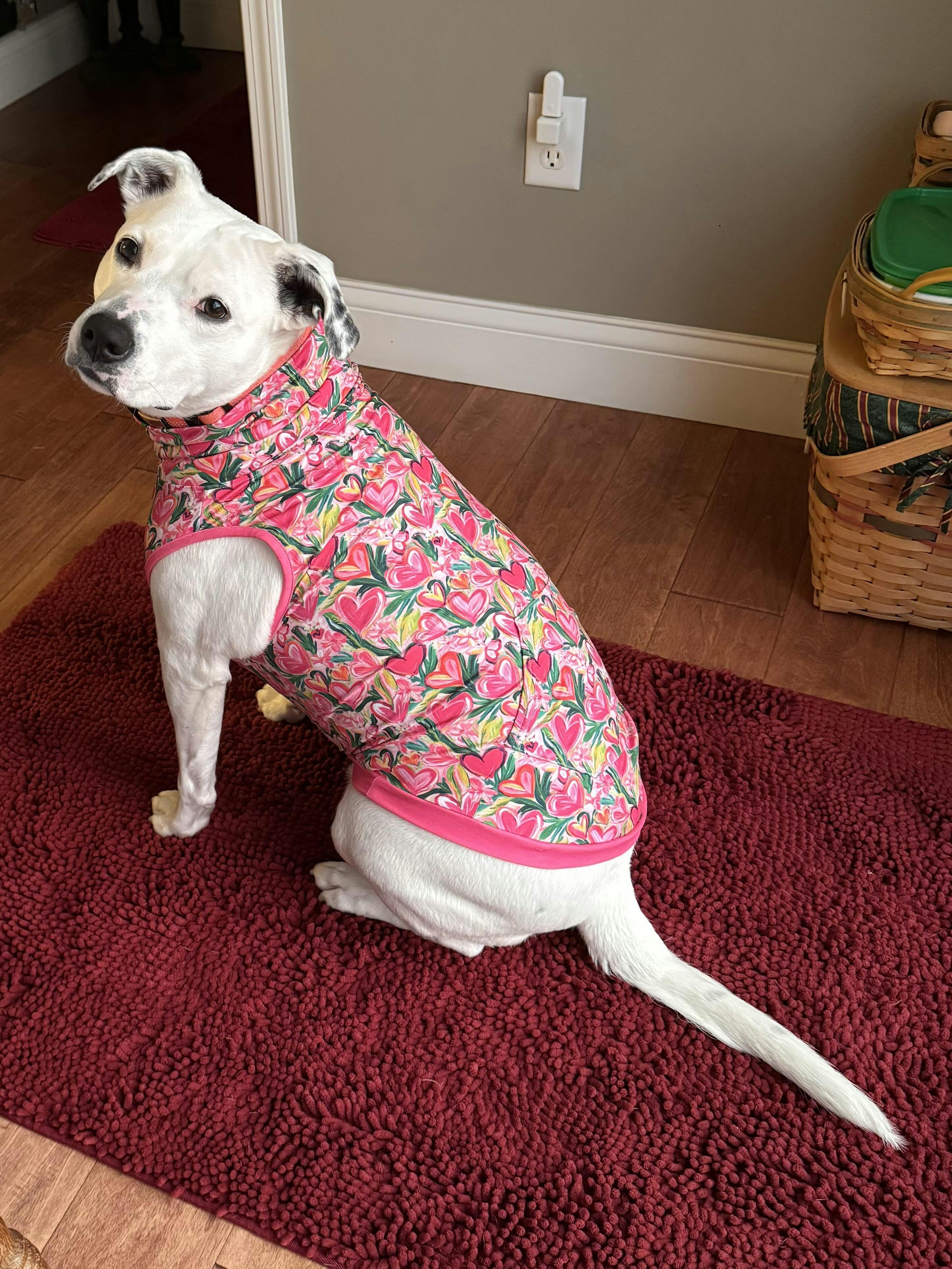 Mia loves her muscle t-shirts and her new one looks very pretty on her white fur. 💗 Great quality and they fit her so well. Thanks, Pittie Clothing!!