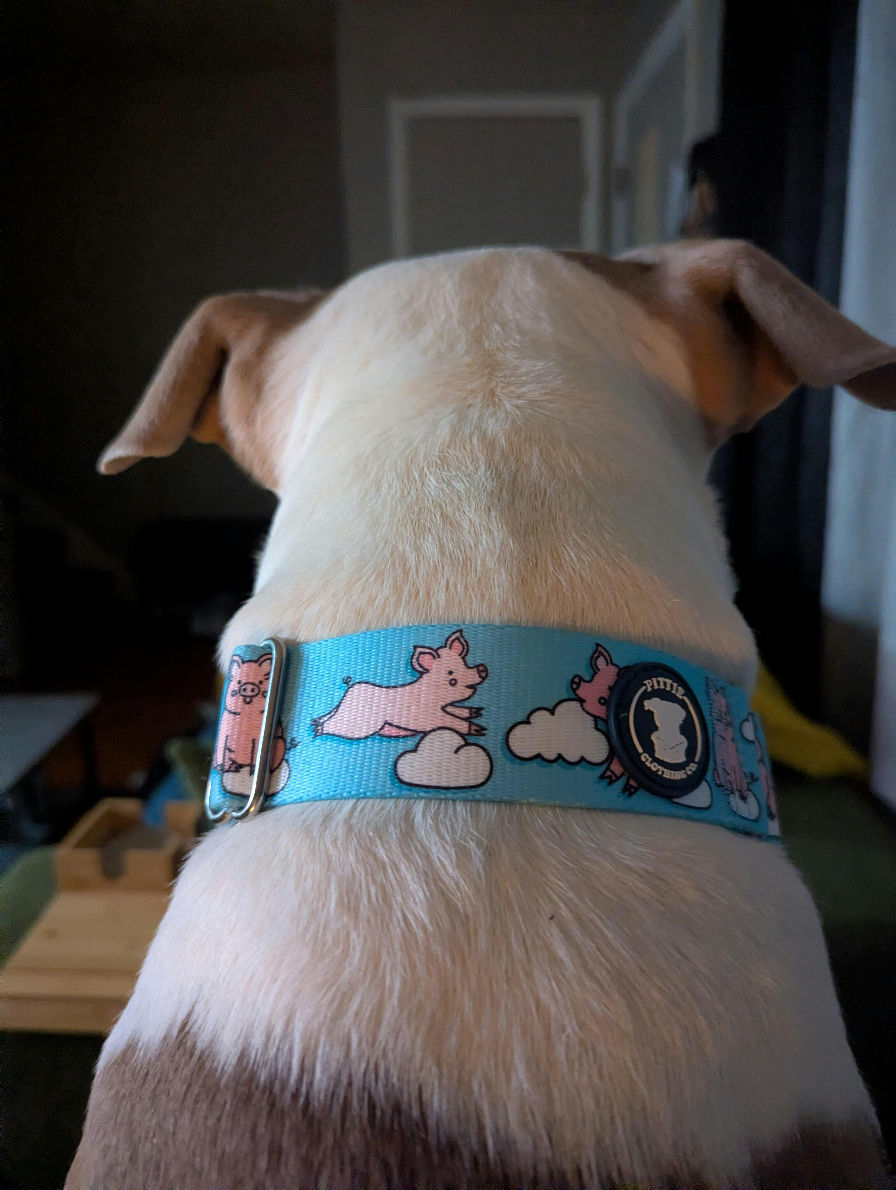 My pittie looks cute in her pink house hippo collar. Great quality and love the martingale design!