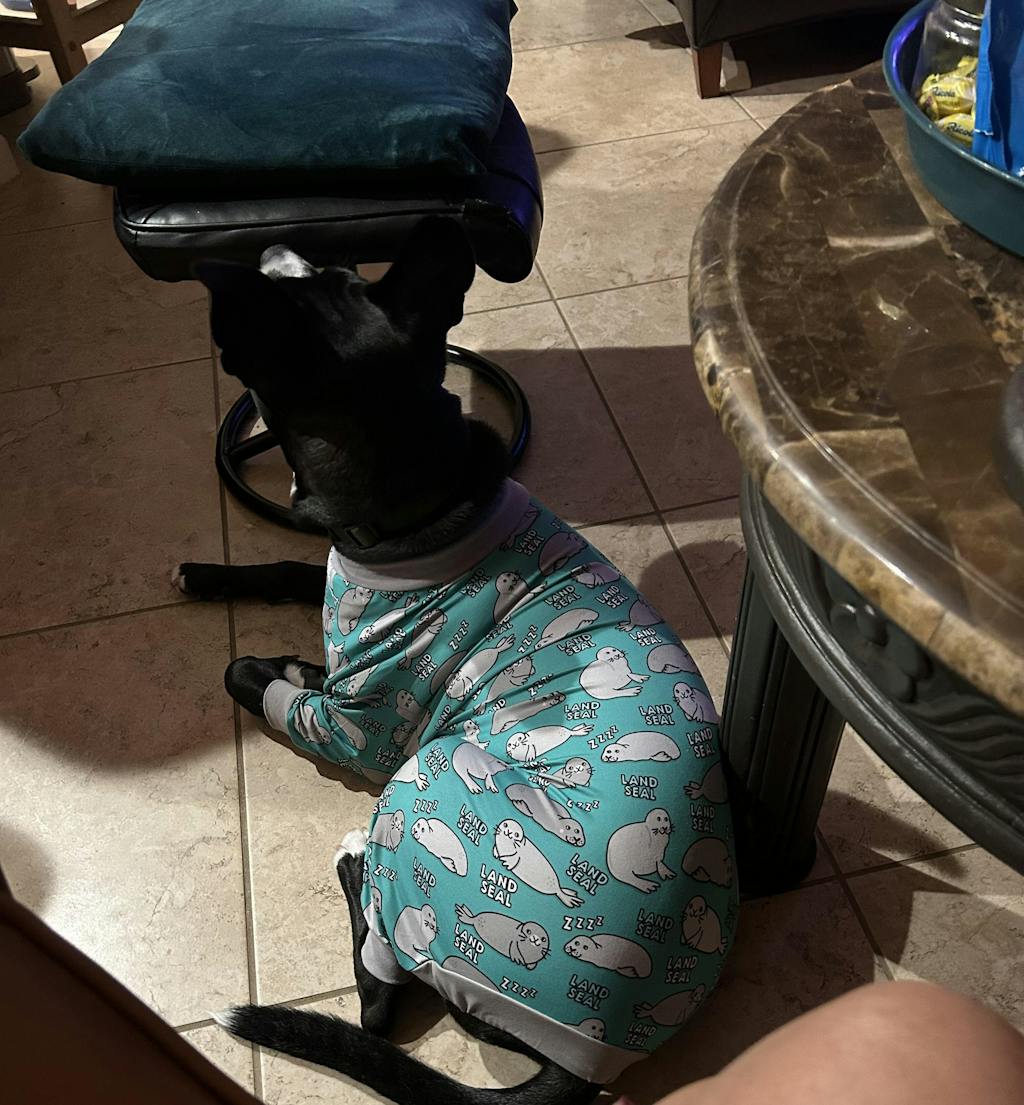 My Staffys are 16 weeks and 13 weeks, (roughly). I had made other clothing/jacket purchases for them since this has been their first winter. Hands down, Pittie Clothing Co. Makes the best clothing. These PJs have been the only clothing my staffys dont mind wearing. Theyre made using the softest yet durable fabric. Both outfits have been washed several times with zero fading or shrinking. Big bonus on the material. All in all, I would have a hard time buying from a competitor what I can get here! 🩷💙