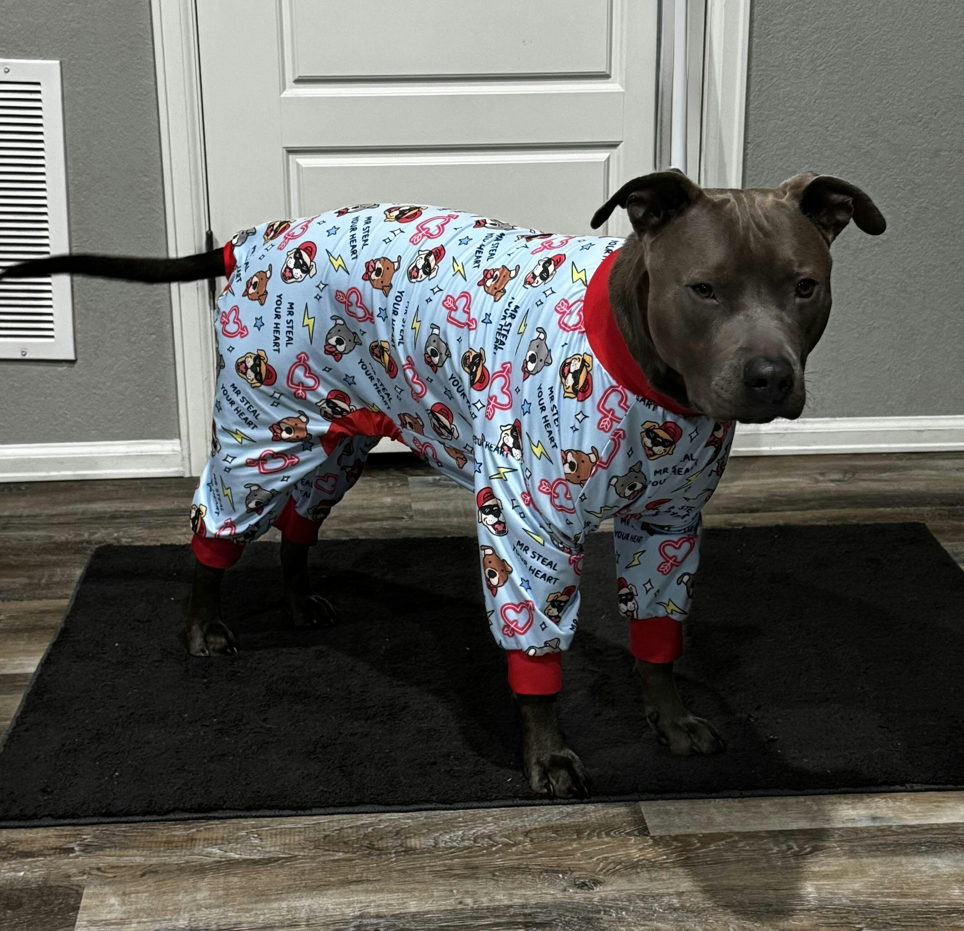Got the Extra Furrestrial and Mr Steal UR Heart. Love them. Makes your pittie/staffy look as lovable as they are. Think it really helps to break the negative stigma when they wear these pajamas and show their true self.