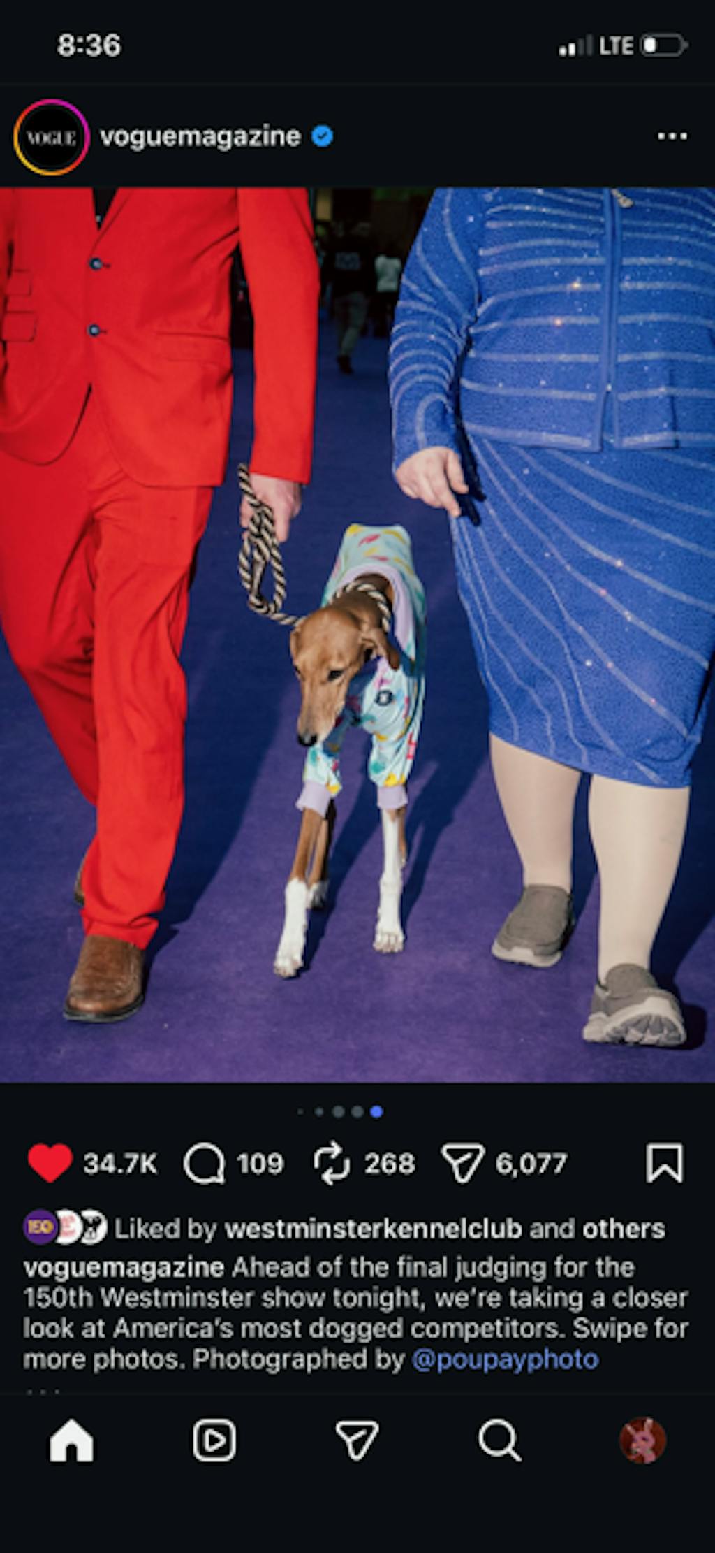 Our Azawakh, Voltaire, was wearing his jammies at Westminster and was highlighted on Vogue's Instagram! ;) They stay on nice and keep him warm. ❤️