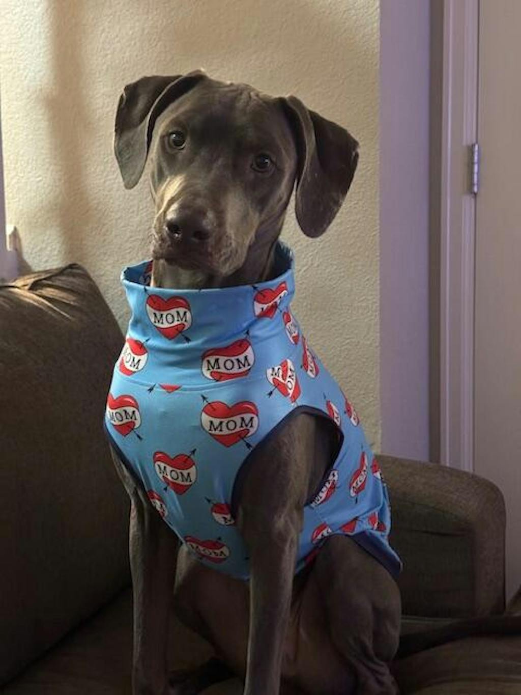 The vet thinks my pup may be allergic to the sun (UV Rays) as he will get welts after time outside in the sun - and he tries to avoid it whenever possible and looks for any shaded area (even with cooler outside temps). So he suggested he wear shirts when outside - so we are looking for fun covers for him and this one is perfect! And he looks so awesome wearing it.
