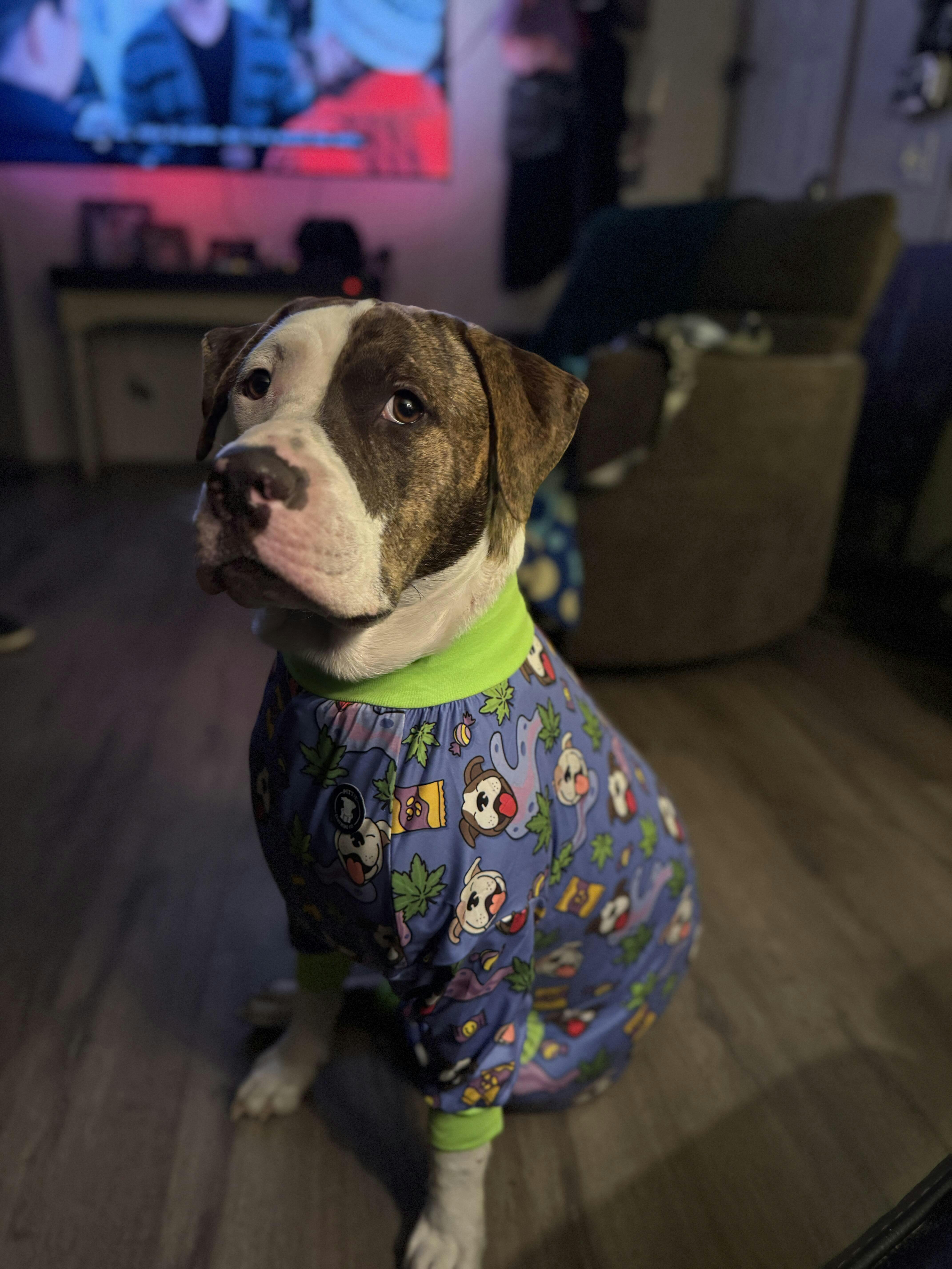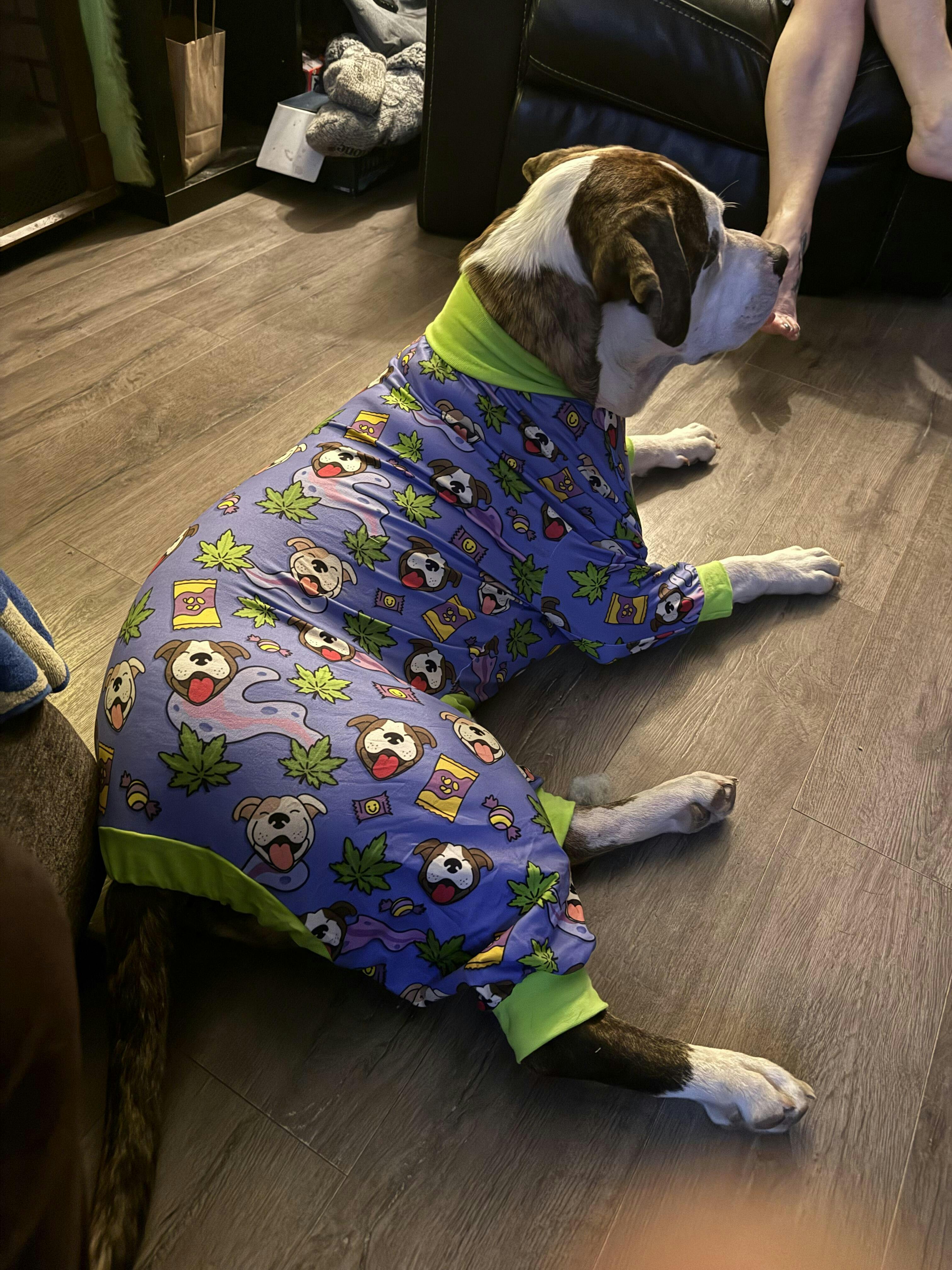 The Pitty PJs are amazing! They fit great, seem to be very comfortable in them and just so adorable in them. I’ve also washed them and they did great no shrinkage or damage after wash. I can’t wait to buy more. My dogs love their PJs