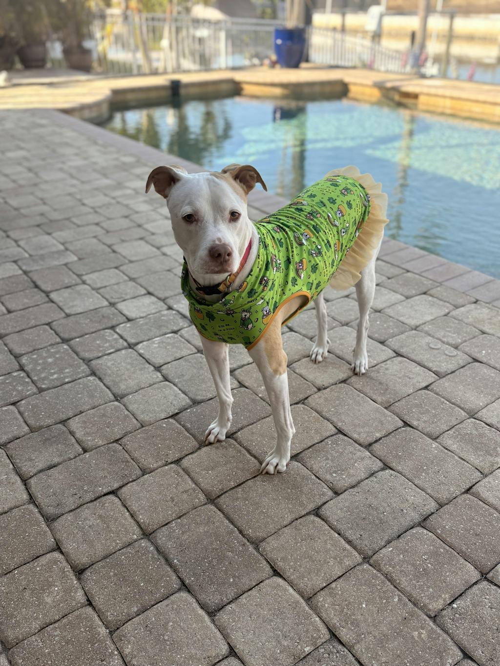 Kiss Me I’m A Pittie - Get your pittie ready for St. Patrick’s Day! This festive tutu features lucky shamrocks, rainbows, and the cutest pups saying ‘Kiss me, I’m a Pittie!