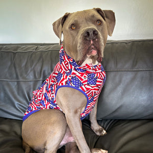Flex your fur-eedom in our star-spangled muscle tee! Covered in USA flags and made for pitbull lovers ready to pup-triotically flex all 4th of July long. Freedom never looked so fetch!