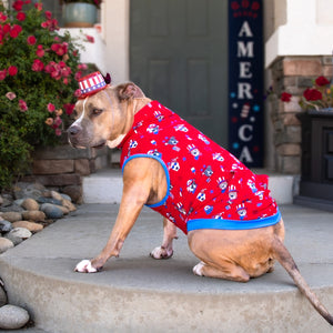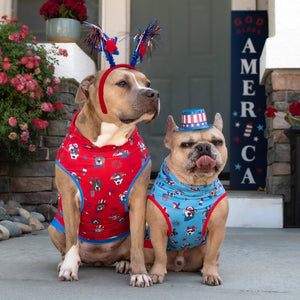 FINAL SALE - Show off your paw-triotic pup pride! Our newest muscle tee features patriotic pitbulls surrounded by fireworks and frosty popsicles. It’s red, white, and drool all over—with just the right amount of flex appeal. Whether you're grilling, chilling, or leading the paw-rade, this tee is your new go-to for freedom fashion!
