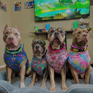Our prints are designed to be playful, fun, and funky so that you can soften breed stigma and put your pup’s true, sweet personality on full display wherever you go.